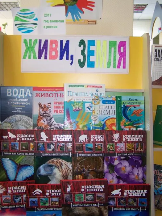 Большое внимание уделяется в библиотеке созданию книжной выставки «Живи,Земля».На выставке представленна серия книг «Красная книга».