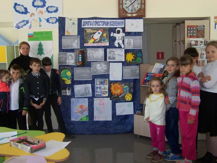 И 12 апреля в библиотеке п. Октябрьский была организованна книжная выставка: «Дорога к просторам Вселенной». Беседа – викторина: «108 минут полёта вокруг Земли». Рисунки детей о космосе.