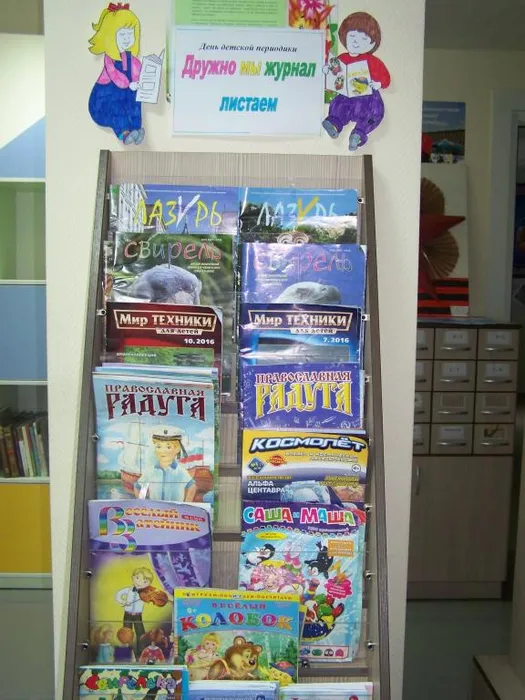 28 марта в сельской библиотеке была организована выставка детской периодики. На выставке были представлены журналы разной направленности и для разного возраста. Для детей 12 – 14 лет – журналы «Лазурит», « Свирель» - экологические журналы, « Мир техники» - для мальчишек – журнал рассказывает о военной техники в наших вооружённых силах.