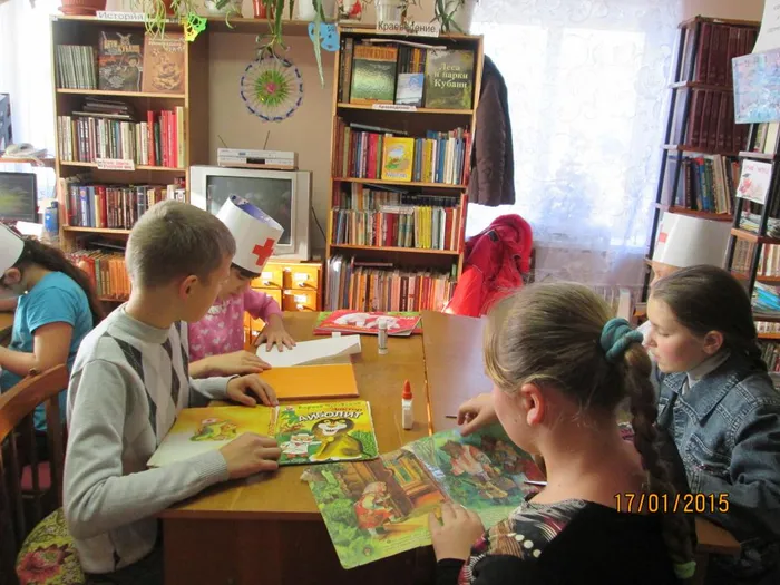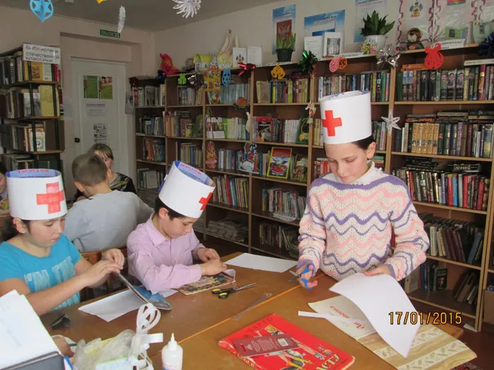 Книжкина больница открылась в Октябрьском! Мероприятие по ремонту библиотечных книг ,организованное заведующей Светланой Сметанчук ,прошло в сельской библиотеке поселка Октябрьский .Ребята - "Айболиты" собрались в библиотеке задолго до назначенного времени.Всем не терпелось примерить медицинские шапочки с красным крестом.Два часа трудились ребята над "больными" книгами: орудуя бумагой ,клеем,ножницами и скотчем.