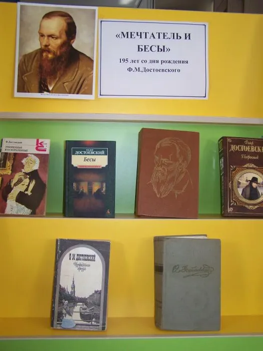 В библиотеке п.Октябрьский .11 ноября 2016 года исполняется 195 лет со дня рождения великого русского писателя Федора Михайловича Достоевского. Книжная выставка под названием «Мечтатель и бесы», посвященная его жизни и творчеству. Личность Федора Михайловича привлекает внимание столь же мощно, как и его творчество. За свои шестьдесят лет он пережил столько, сколько не пережил весь род Достоевских за пятьсот лет (включая свирепый XX век!). Кажется иногда, судьба намеренно играла с ним во все известные, мыслимые и немыслимые, варианты человеческой биографии.